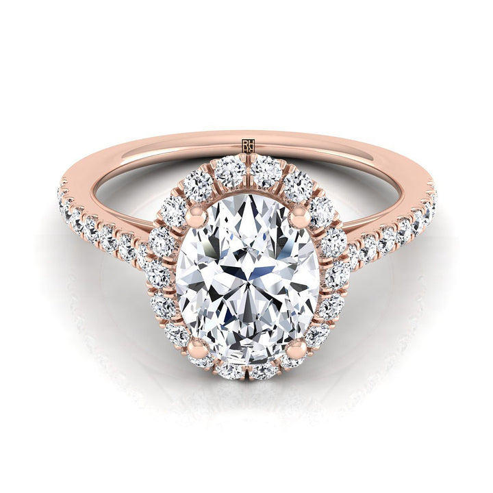 14K Rose Gold Oval Diamond Petite Halo French Pave Engagement Ring -3/8ctw