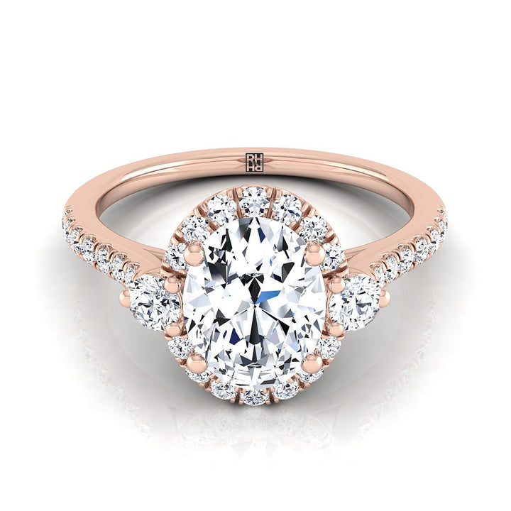 14K Rose Gold Oval Diamond Three Stone Delicate Halo Engagement Ring -1/3ctw