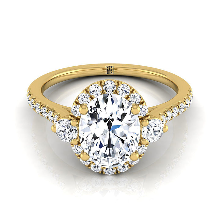 18K Yellow Gold Oval Diamond Three Stone Delicate Halo Engagement Ring -1/3ctw