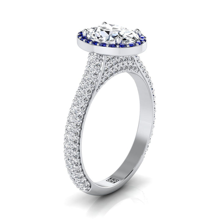 Exquisitely Handcrafted, This Oval Diamond Engagement Ring With Sapphire Accented Halo Showcases Brilliant Cut Diamonds (h-i/vs 0.75ctw) Beautifully Pave Set In A Classic 18k White Gold Setting