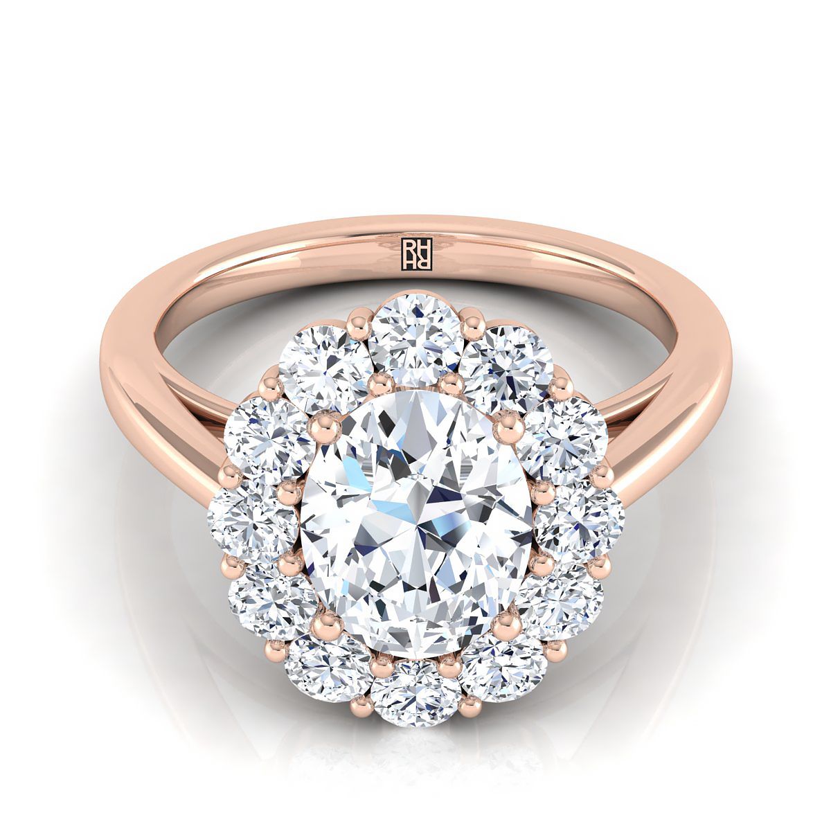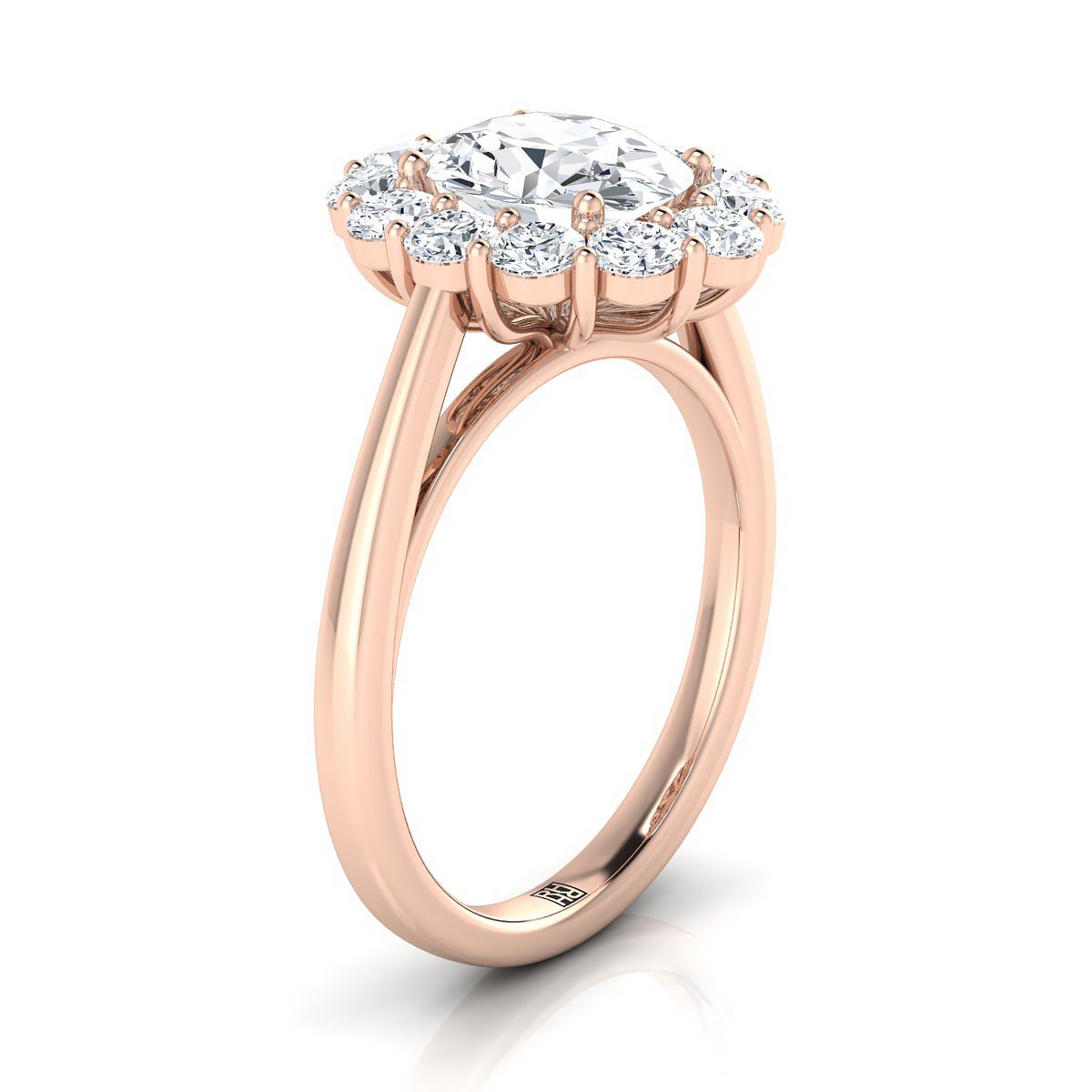 14K Rose Gold Oval Diamond Floral Halo Engagement Ring -3/4ctw