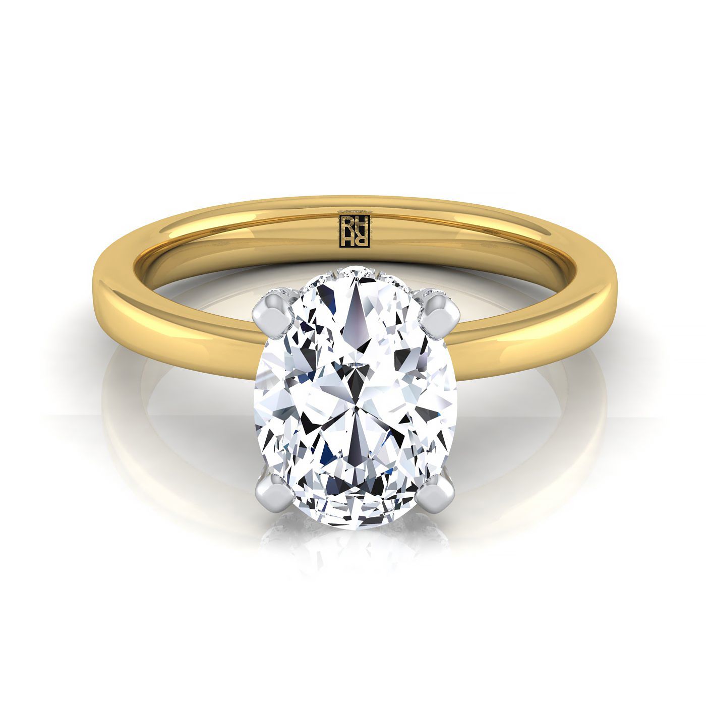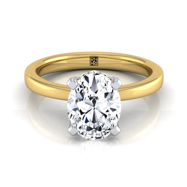 14K Yellow Gold Oval Diamond Hidden Pave Basket Crown Solitaire Engagement Ring -1/10ctw