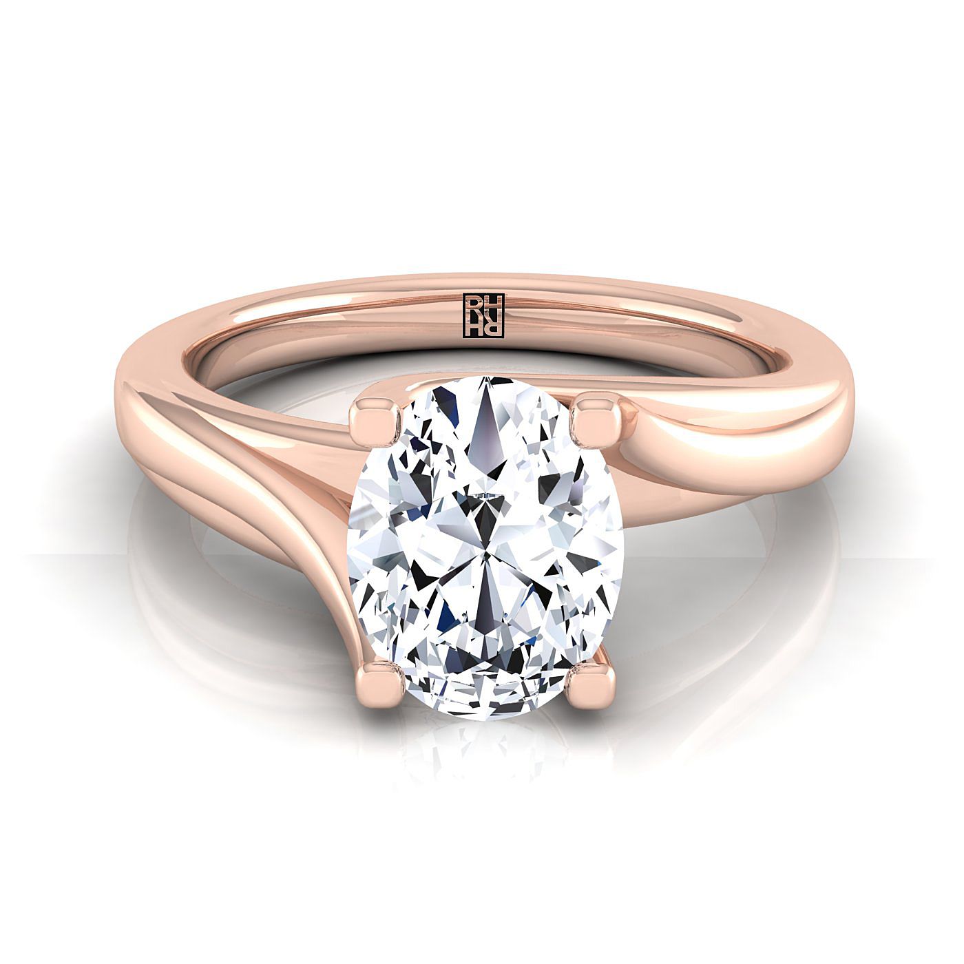 14K Rose Gold Oval Twisted Bypass Solitaire Engagement Ring