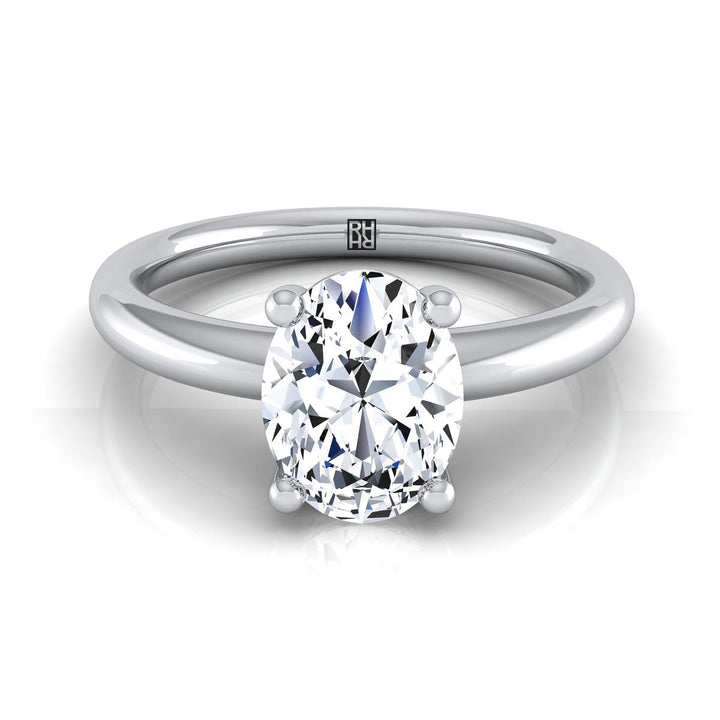 18K White Gold Oval Rounded Comfort Fit Solitaire Engagement Ring