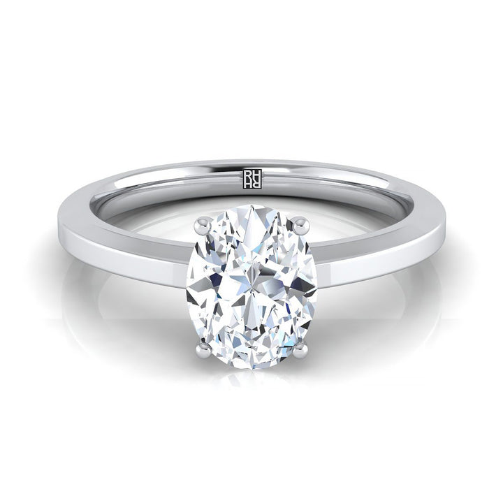 18K White Gold Oval Beveled Edge Comfort Style Bright Finish Solitaire Engagement Ring