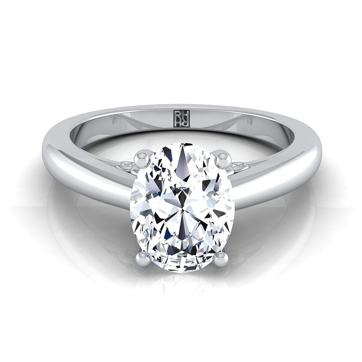 18K White Gold Oval Scroll Gallery Comfort Fit Solitaire Engagement Ring