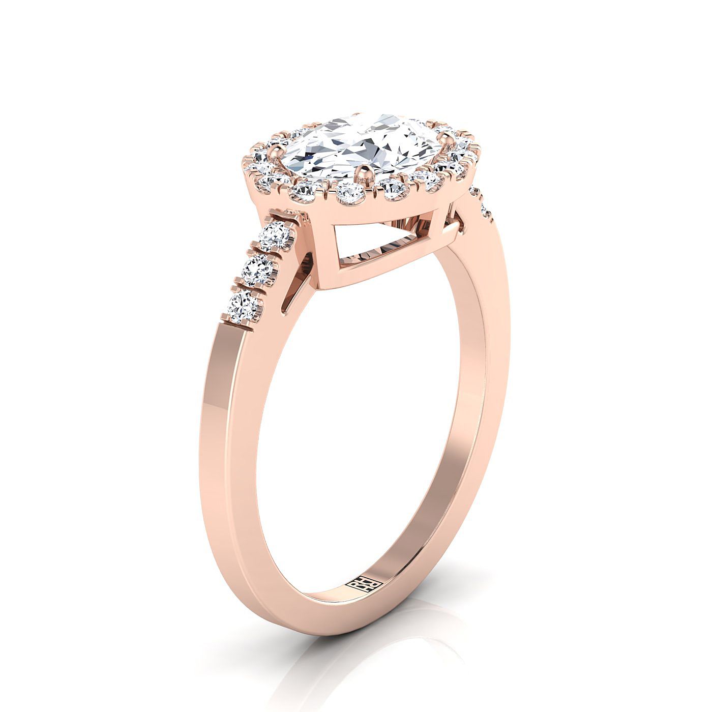 Classic And Elegant, This Oval Shape Diamond Halo (east -west) Engagement Ring With A Pave Shank Showcases Brilliant Cut Diamonds (h-i/vs 0.33ctw) Beautifully Set In A Classic 14k Rose Gold Setting.