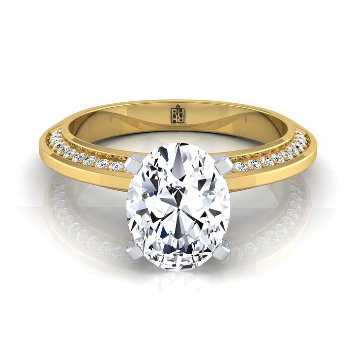 18K Yellow Gold Oval Diamond Knife Edge Micropave Engagement Ring -1/5ctw