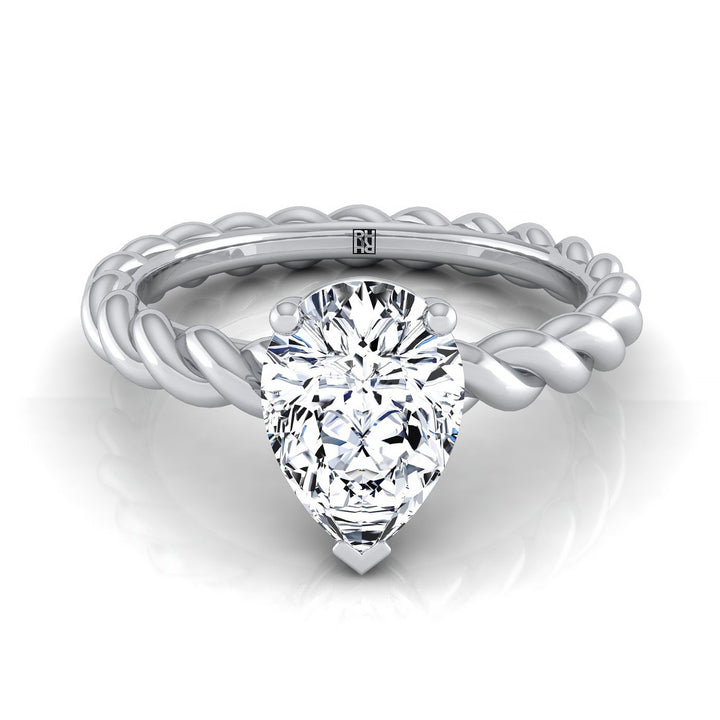 Platinum Pear Shape Center Twisted Rope Braid Solitaire Band