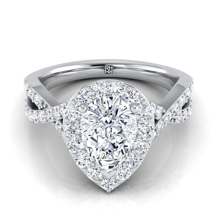 18K White Gold Pear Shape Center Twisted Open Lattice Diamond Halo Engagement Ring -3/4ctw
