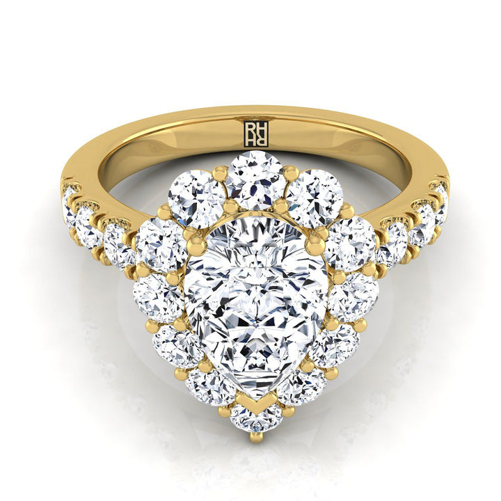 14K Yellow Gold Pear Shape Center Diamond Luxe Style French Pave Halo Engagement Ring -1-1/10ctw
