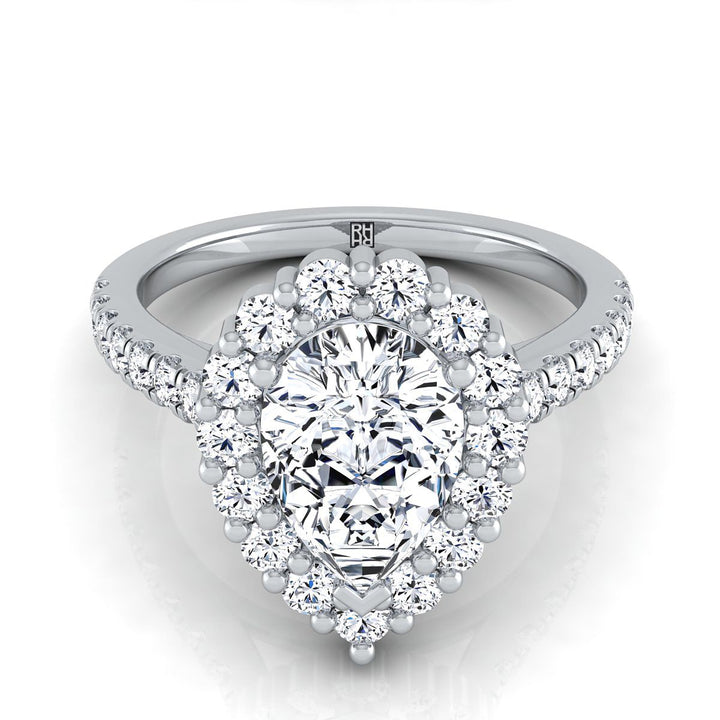 18K White Gold Pear Shape Center Diamond Shared Prong Halo Engagement Ring -5/8ctw