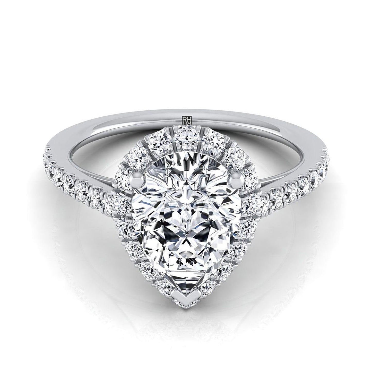 Exquisitely Handcrafted, This Pear Shape Halo Pave Engagement Ring Showcases Brilliant Cut Diamonds (h-i/vs 0.40ctw) Beautifull Set In A Classic 14k White Gold Setting.