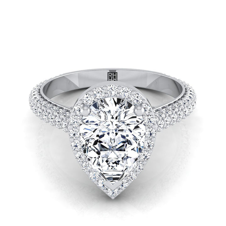 18K White Gold Pear Shape Center Diamond Micro-Pavé Halo Engagement Ring -7/8ctw