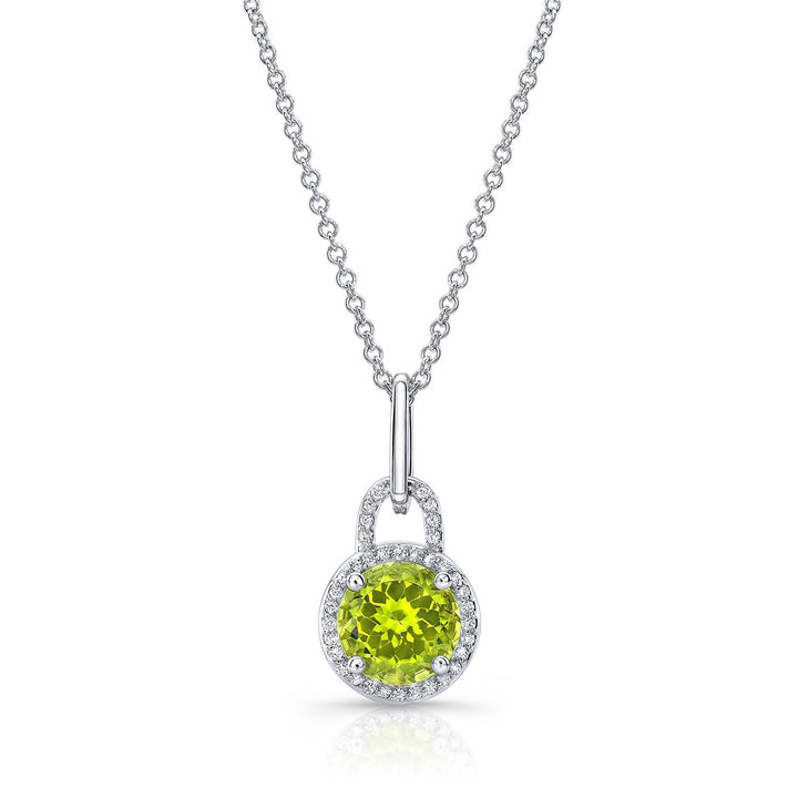 14k White Gold Pendant With 1 Round Peridot At 7mm(1.47ct) And 46 Round Brilliant Diamonds Weighing 0.12ctw On A 17-inch Rolo Chain