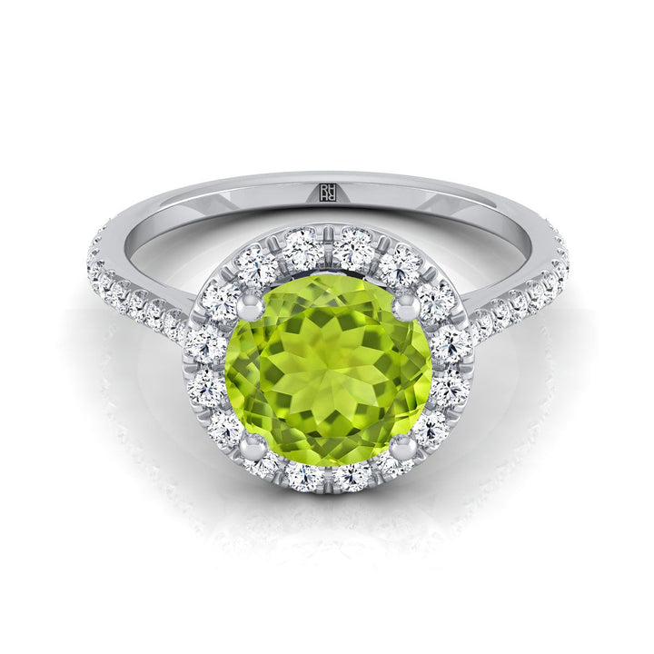 18K White Gold Peridot Peridot Halo Diamond Pave Engagement Ring -3/8ctw