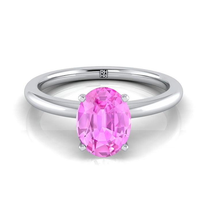 Platinum Oval Pink Sapphire Round Comfort Fit Claw Prong Solitaire Engagement Ring