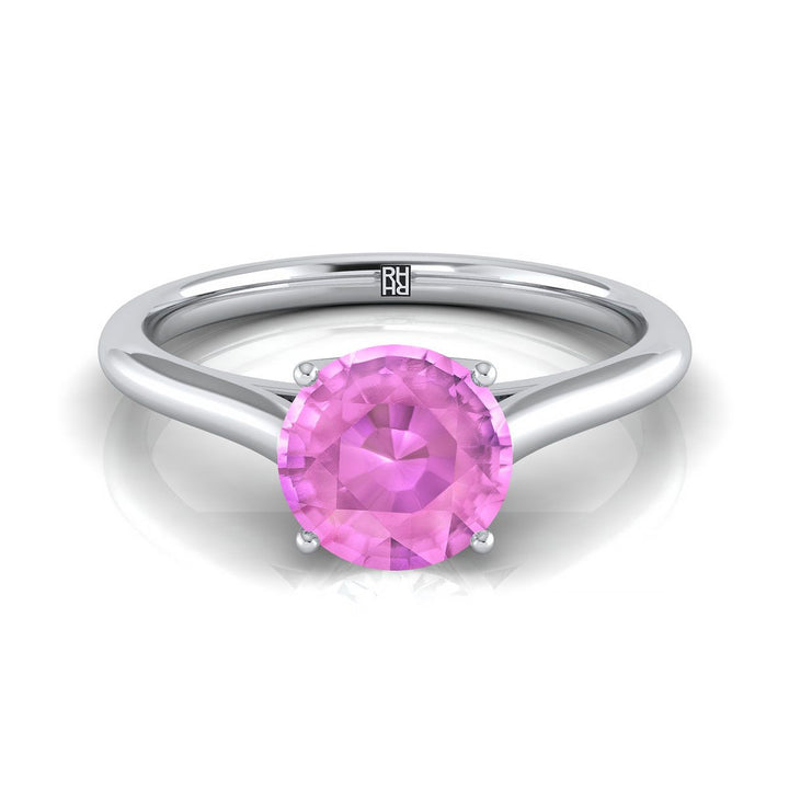 Platinum Round Brilliant Pink Sapphire Cathedral Style Comfort Fit Solitaire Engagement Ring
