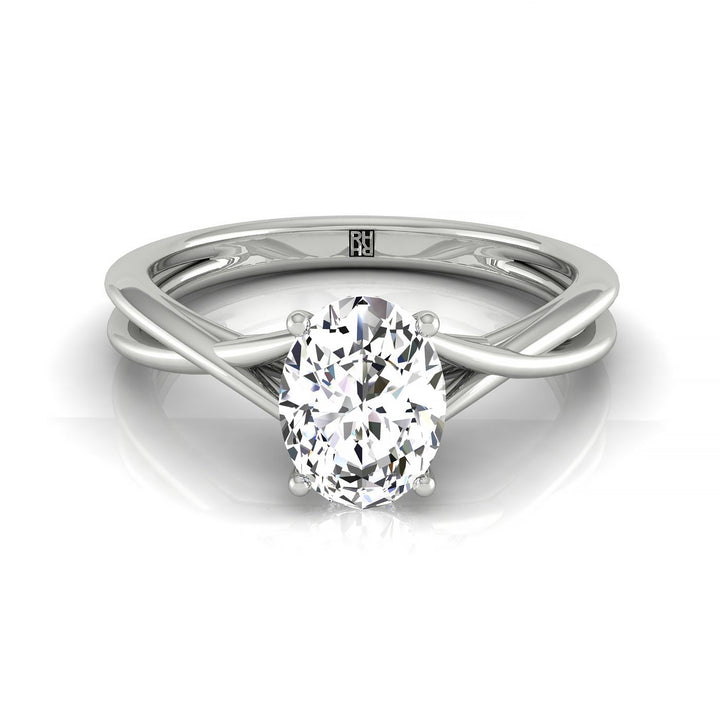 Plat Oval Twisted Shank Hidden Halo Solitaire Engagement Ring With 14 Prong Set Round Diamonds Sz 7.5