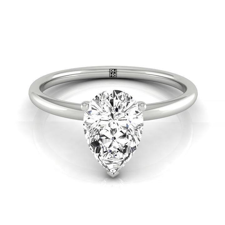 Plat Pear Solitaire Engagement Ring With Hidden Halo With 8 Prong Set Round Diamonds