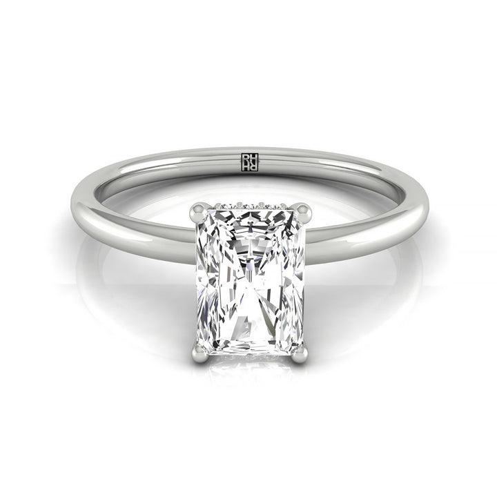 Plat Radiant Double Hidden Halo Solitaire Engagement Ring With 32 Prong Set Round Diamonds