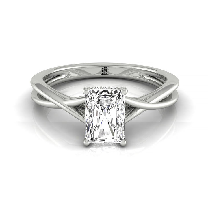 Plat Radiant Twisted Shank Double Hidden Halo Solitaire Engagement Ring With 38 Prong Set Round Diamonds