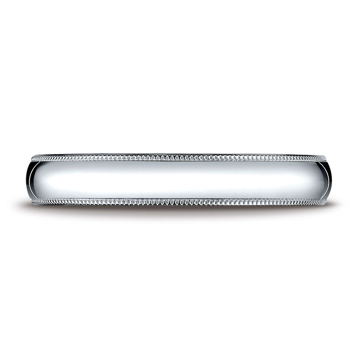 This Remarkable Platinum 4mm Band Features A Slightly Domed Surface With Milgrain Edges And Is Flat On The Inside For A Traditional Profile.