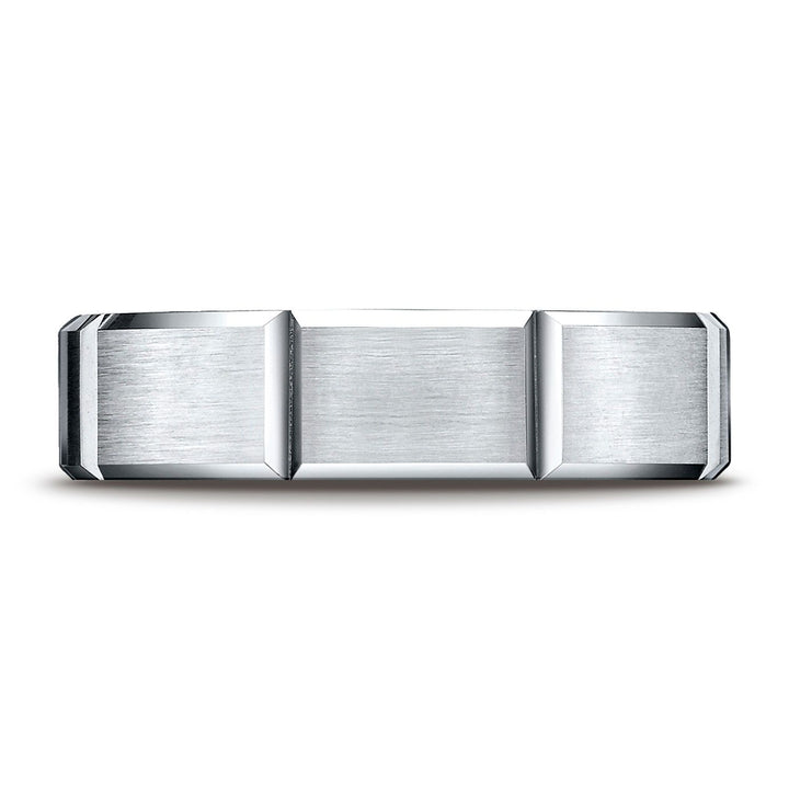 This Platinum 6mm Comfort-fit Satin-finished Carved Design Band Features Strong Vertical Grooves Along The Center For A Refined, Industrial Look.