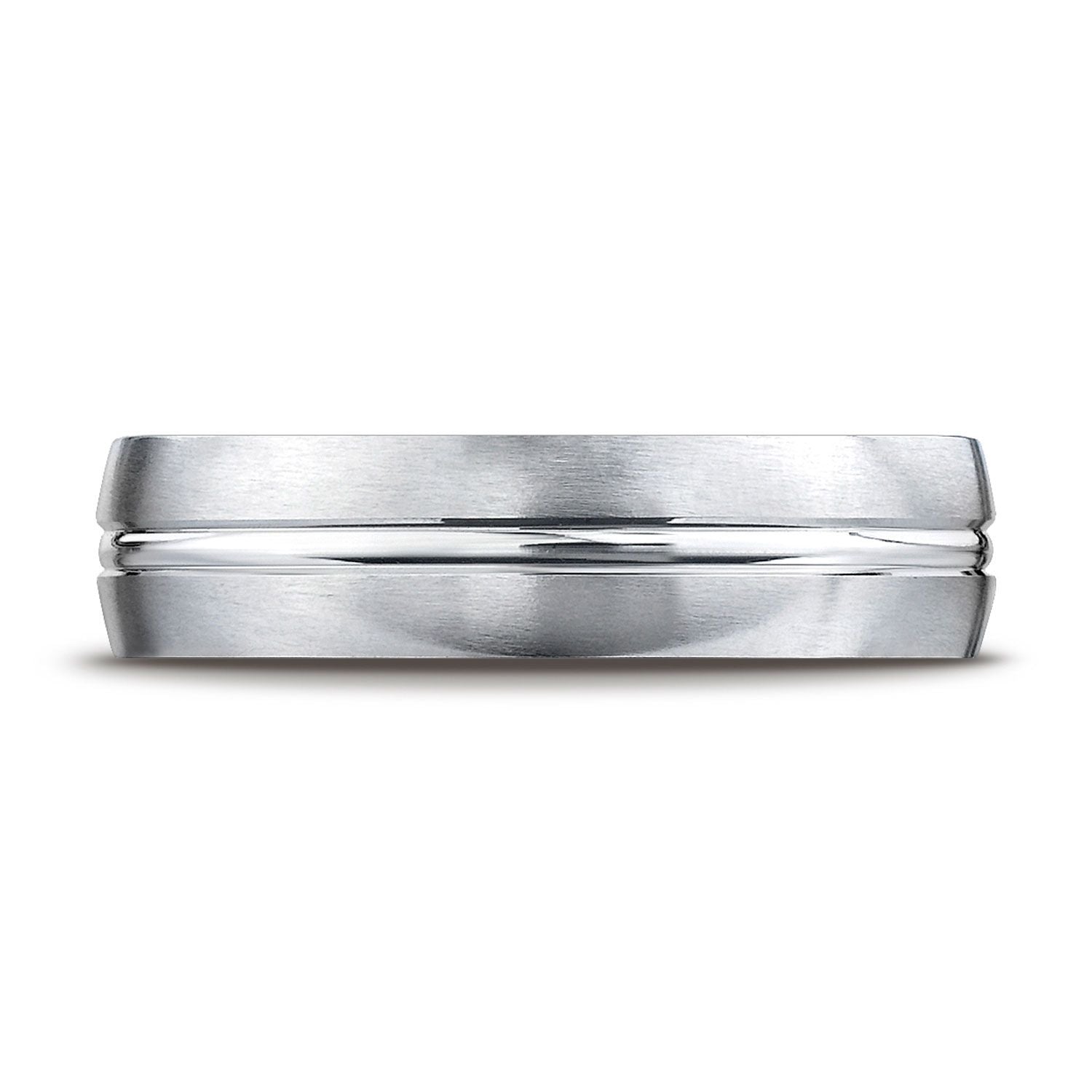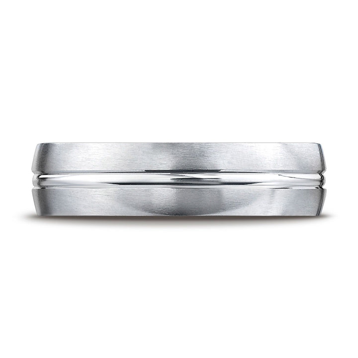 This Platinum 6mm Comfort-fit Satin-finished Carved Design Band Features A High Polished Cut Along The Center.
