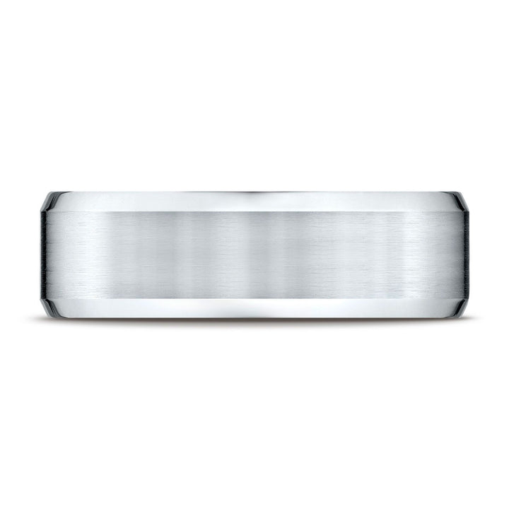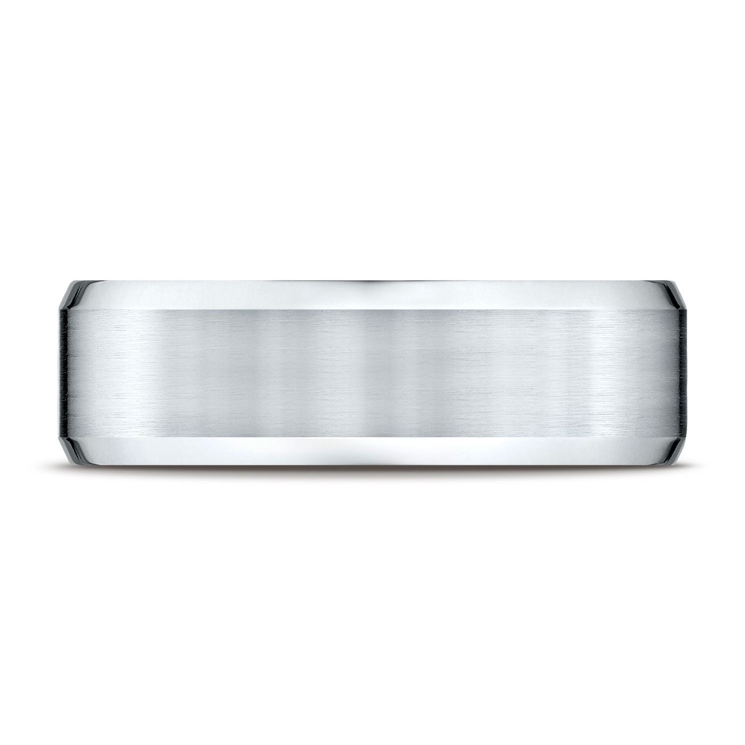 This Platinum 7mm Comfort-fit Satin-finished Carved Design Band Features A High Polished Beveled Edge For A Perfect Balance Of Style And Class.