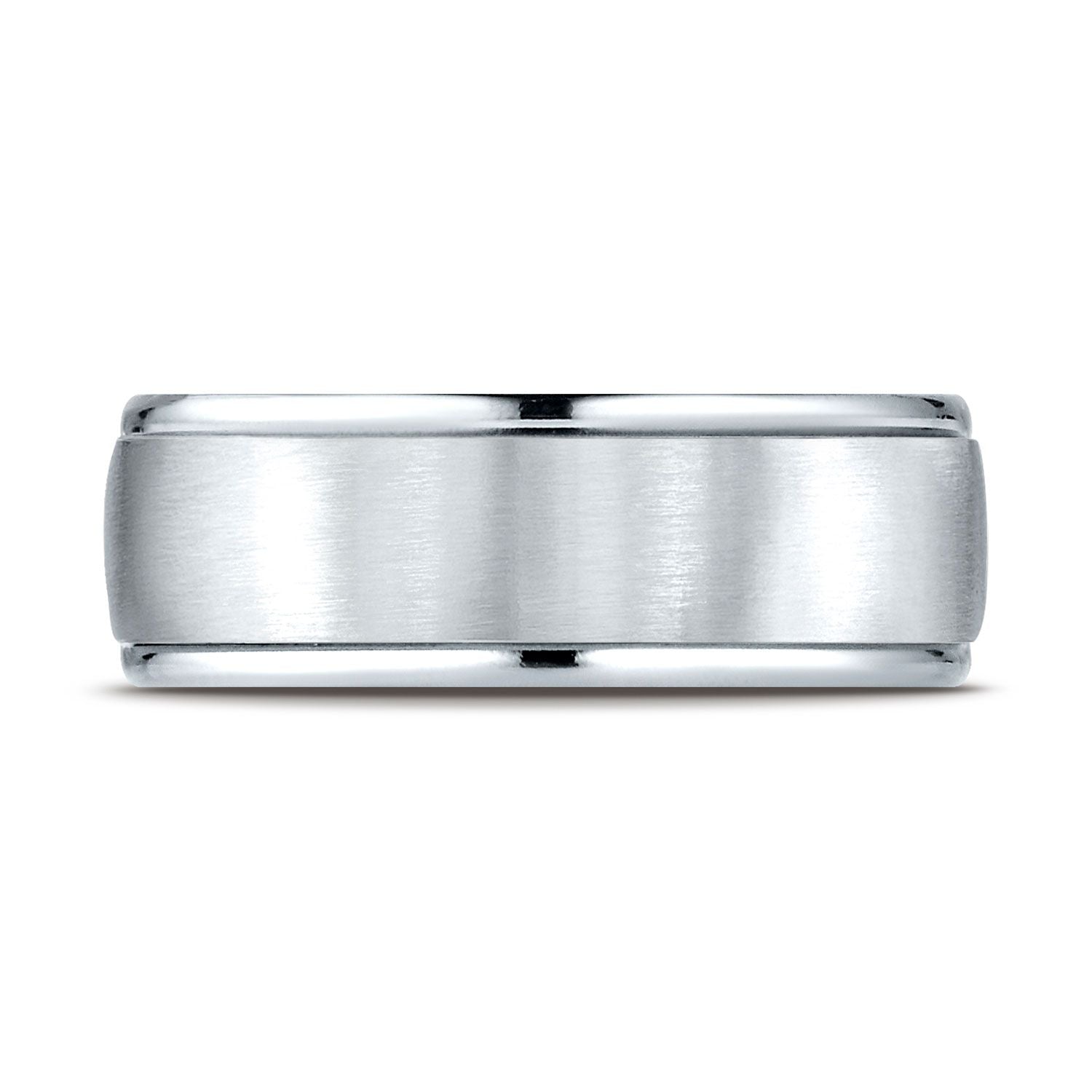 This Platinum 8mm Comfort-fit Carved Design Band Features A Satin Finish With A High Polished Round Edge For Noticeable Style.