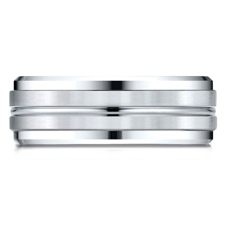 Platinum Gold 8mm Comfort-fit Drop Bevel Satin Center Cut Design Band