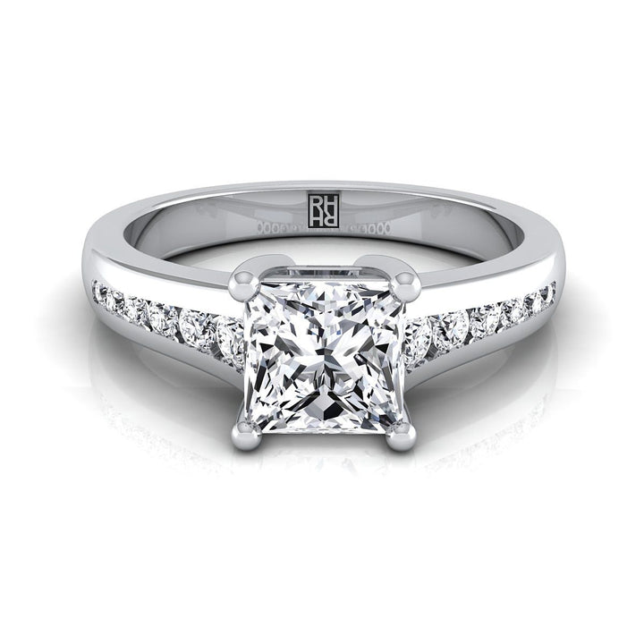 14K White Gold Princess Cut Contemporary Tapered Diamond Channel Engagement Ring -1/6ctw