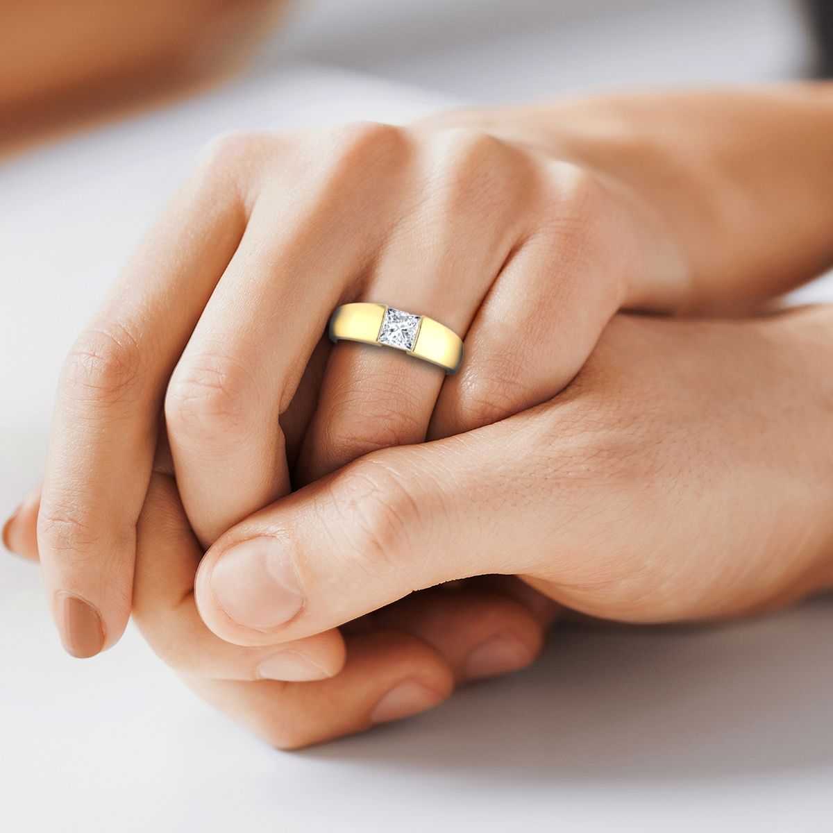 14K Yellow Gold Princess Cut Wide High Polish Band Tension Set Solitaire Engagement Ring