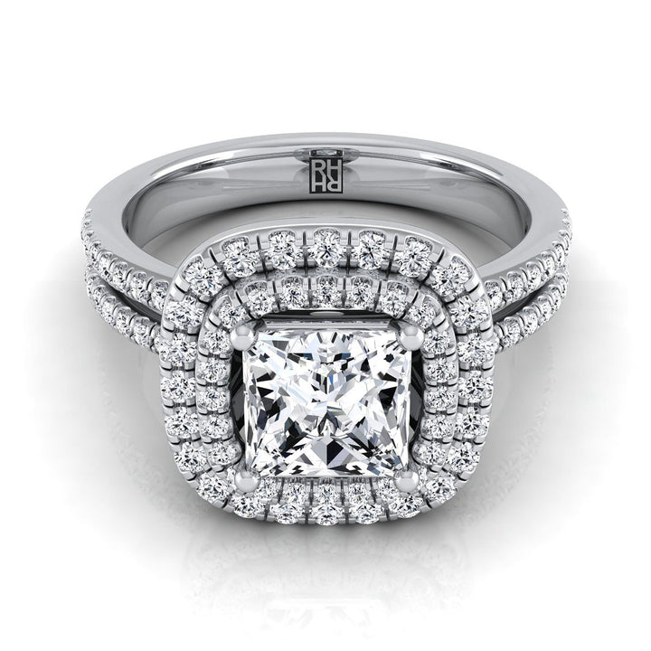 Exquisitely Handcrafted, This Double Pave Halo Princess Cut Engagement Ring Showcases Brilliant Cut Diamonds (h-i/vs 0.45ctw) Beautifully Pave Set In A Classic 18k White Gold Setting.