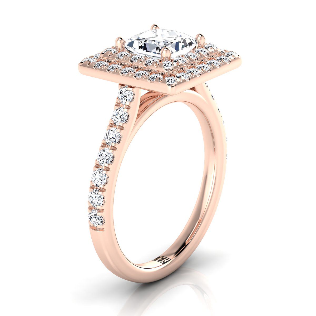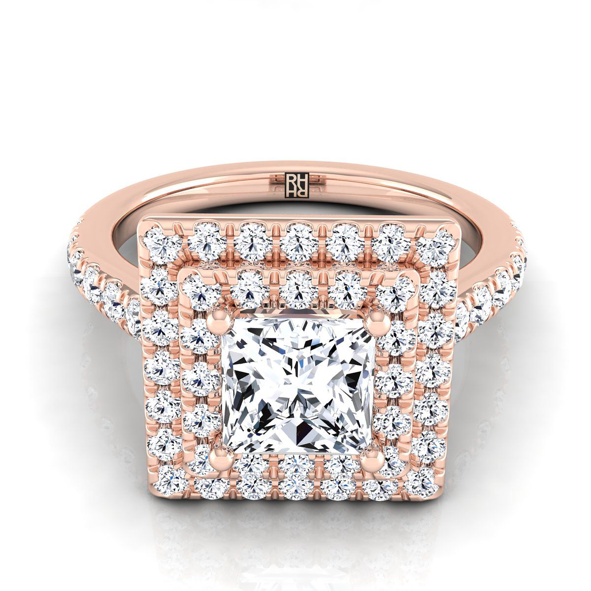 Exquisitely Handcrafted, This Double Pave Princess Cut Halo Engagement Ring Showcases Brilliant Cut Diamonds (h-i/vs 0.80 Ctw) Beautifully Pave Set In A Classic 14k Rose Gold Setting.