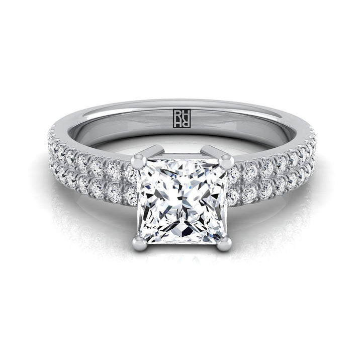 14K White Gold Princess Cut Diamond Double Pave Row Engagement Ring -1/4ctw
