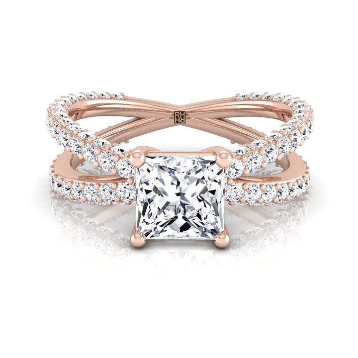 14K Rose Gold Princess Cut Open Diamond Pave Criss Cross Engagement Ring -1-1/3ctw