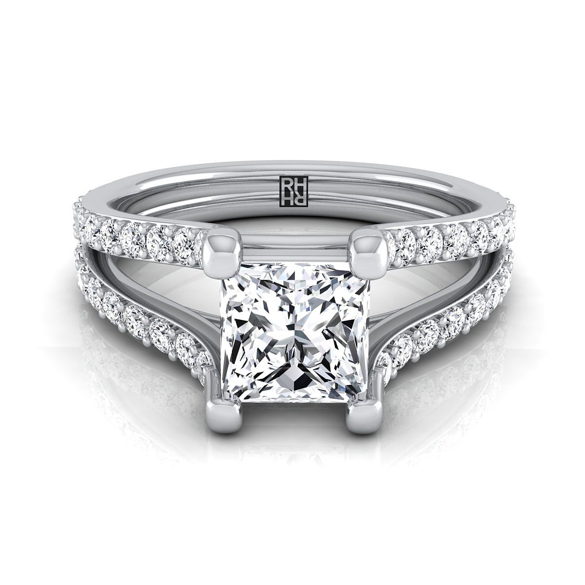 Classic And Elegant, This 14k White Gold Princess Cut Diamond Engagement Ring Showcases Brilliant Cut Diamonds (h-i/vs 0.58ctw) Beautifully Pave Set In A Split Shank Creating An Exquisite Sparkle For All To Admire.