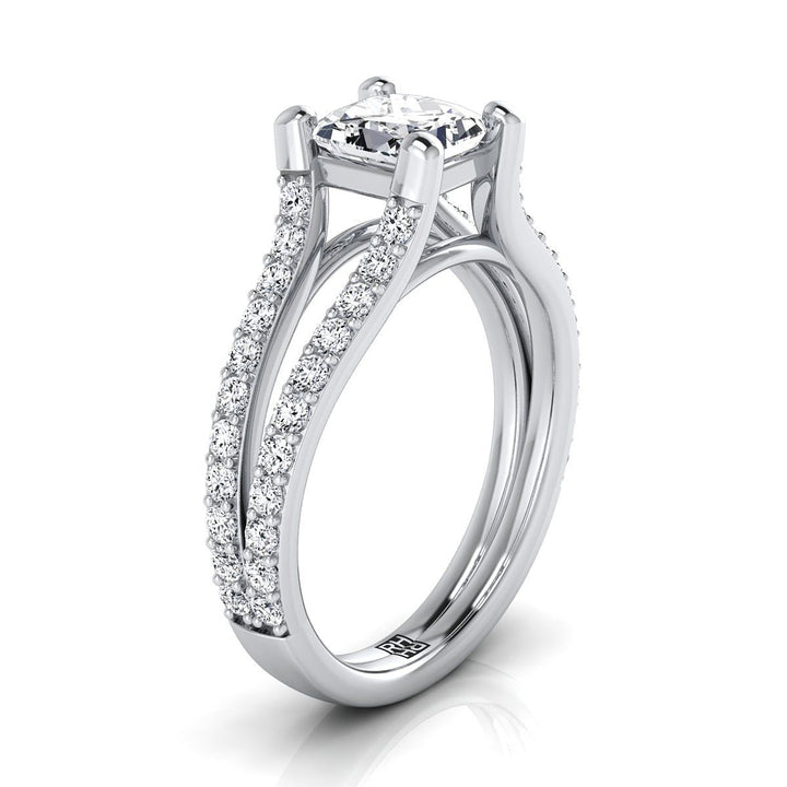 14K White Gold Princess Cut Prong Set Sapphire Split Shank Engagement Ring