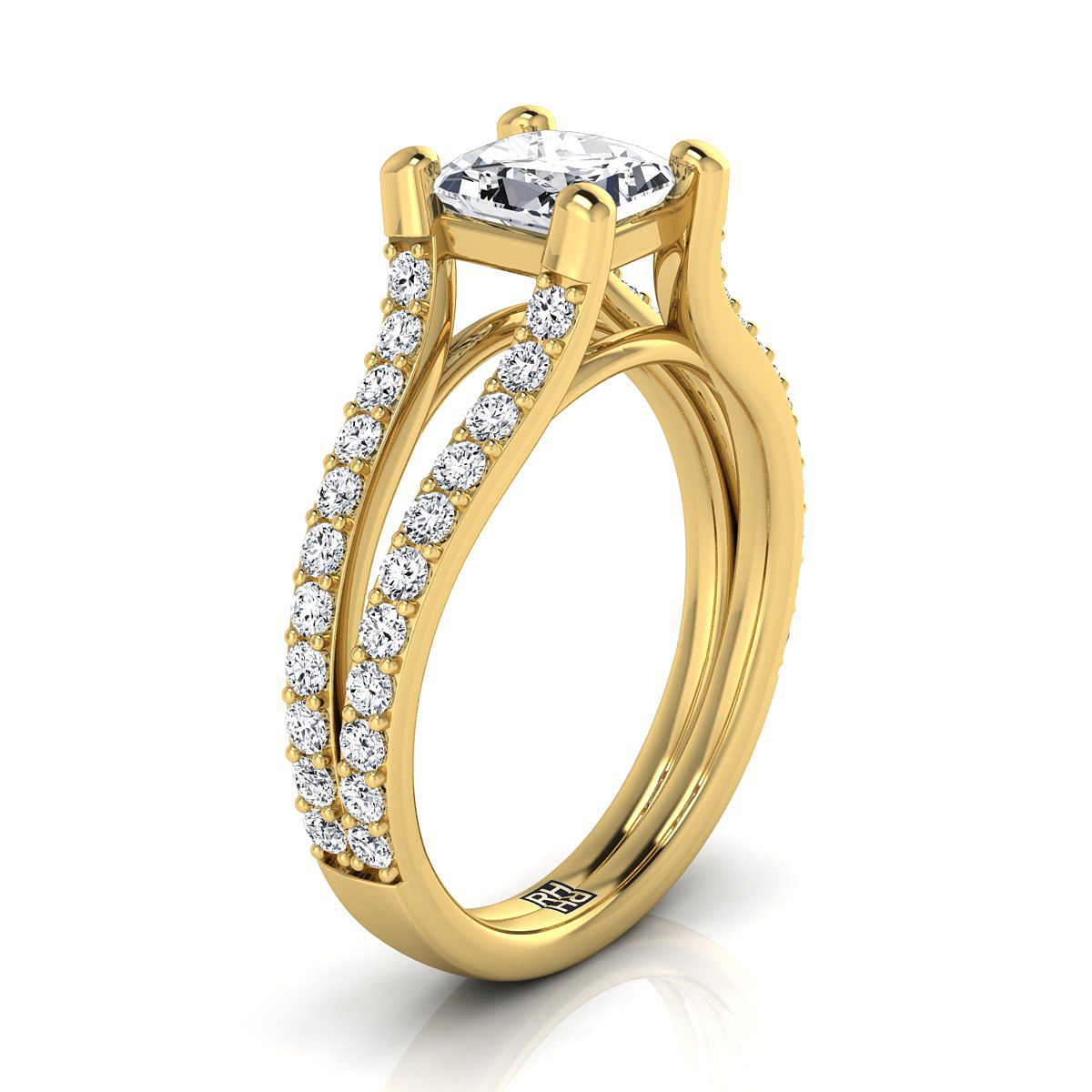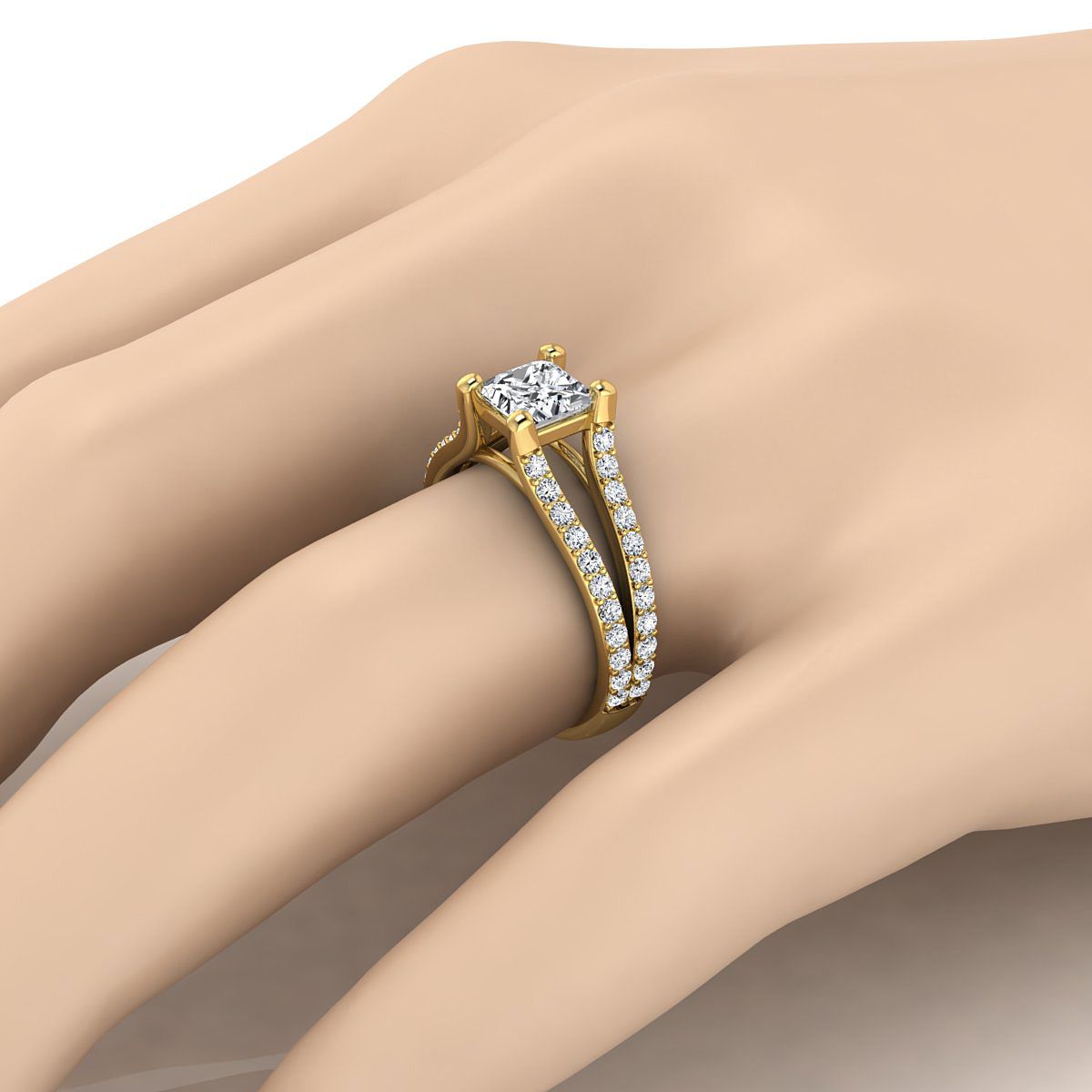 Classic And Elegant, This 18k Yellow Gold Princess Cut Diamond Engagement Ring Showcases Brilliant Cut Diamonds (h-i/vs 0.58ctw) Beautifully Pave Set In A Split Shank Creating An Exquisite Sparkle For All To Admire.