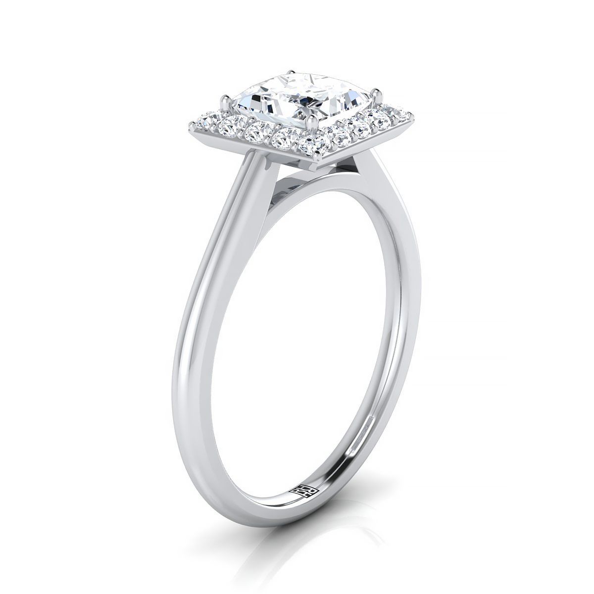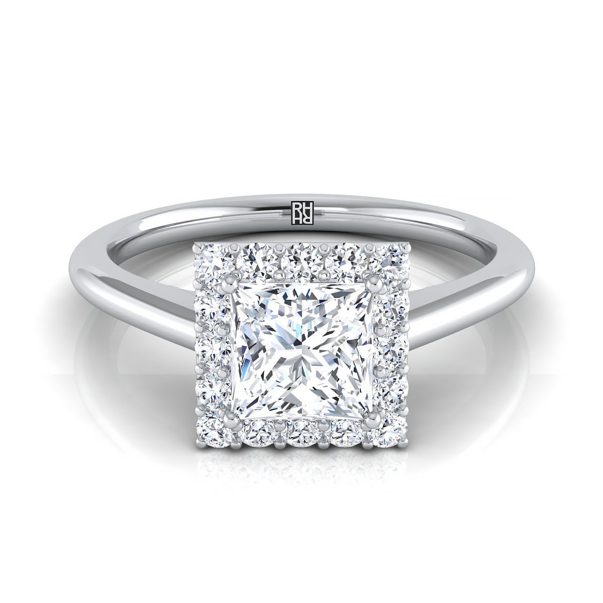 Platinum Princess Cut Diamond Shared Prong Halo Engagement Ring -1/5ctw