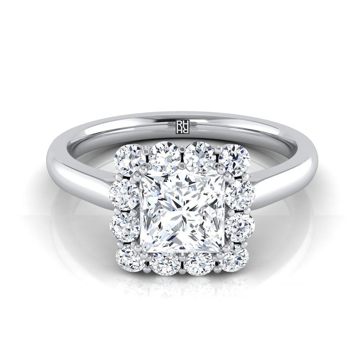 Classic In Design, This Princess Cut Diamond Halo Engagement Ring Showcases Brilliant Cut Diamonds (h-i/vs 0.40ctw) Exquisitely Prong Set In A Refined Platinum Setting.