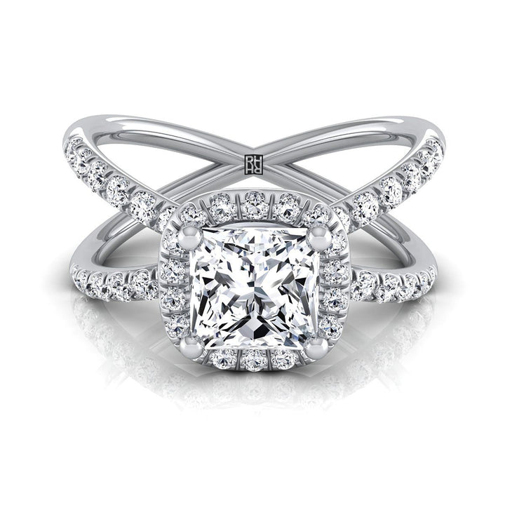 14K White Gold Princess Cut Diamond Open Criss Cross French Pave Engagement Ring -1/2ctw