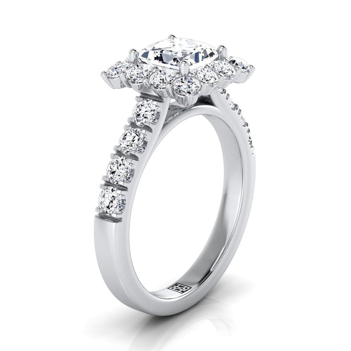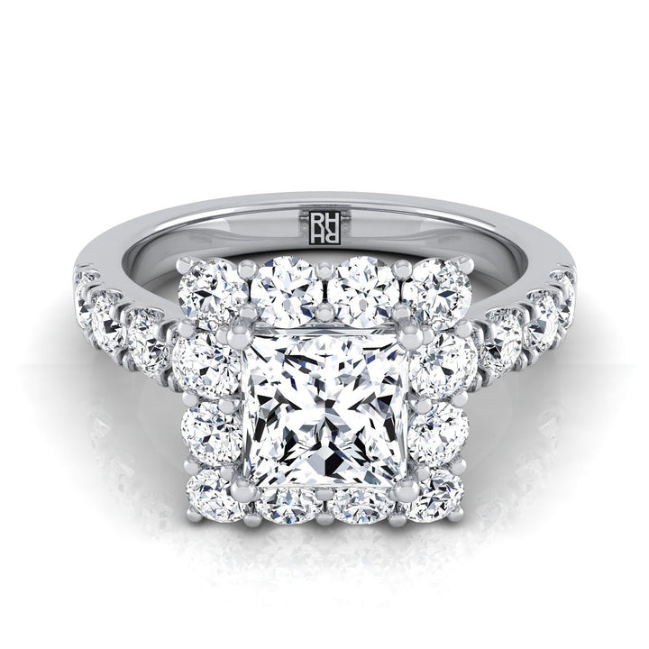 Platinum Princess Cut Diamond Luxe Style French Pave Halo Engagement Ring -1-1/10ctw