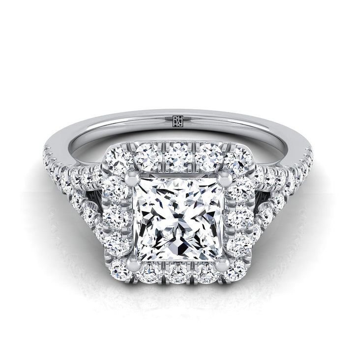 14K White Gold Princess Cut Diamond Simple Prong Halo Split Shank Engagement Ring -1/2ctw