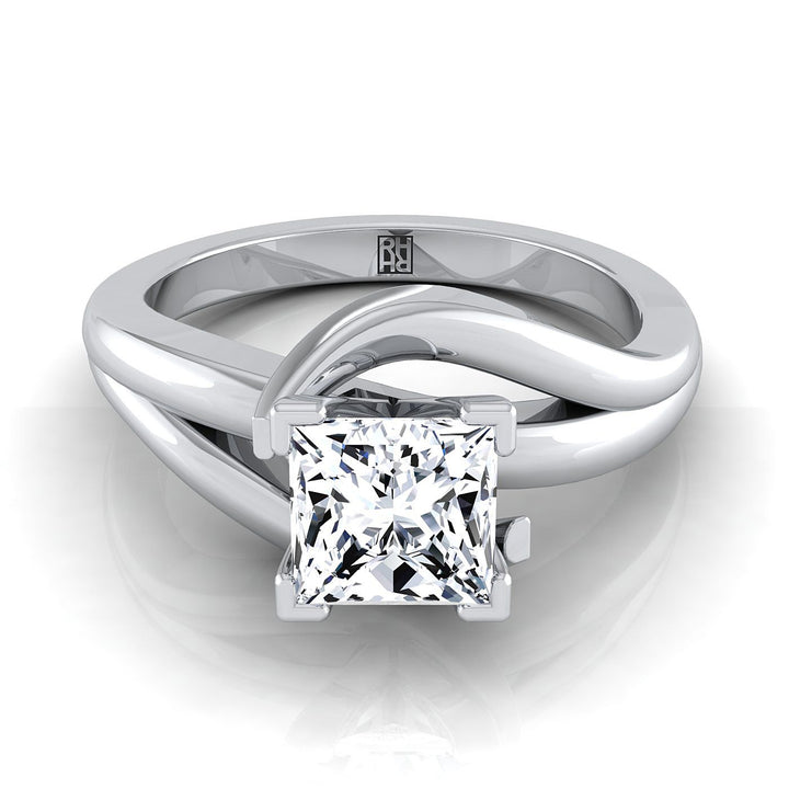 18K White Gold Princess Cut Asymetical Bypass Solitaire Twist Engagement Ring