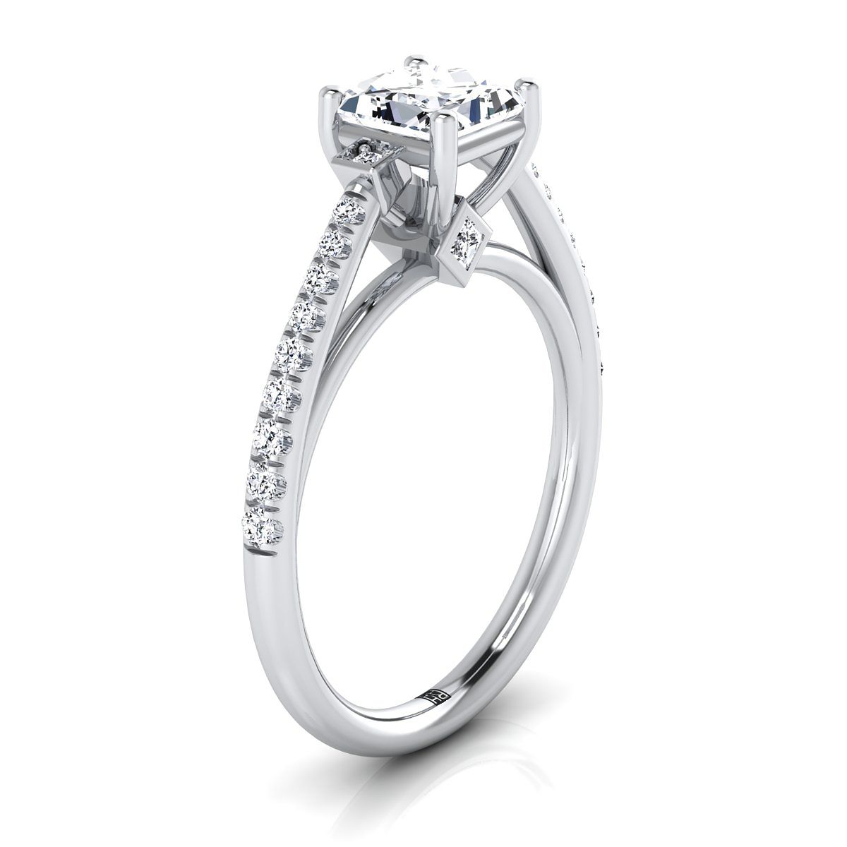 An Elegant Statement Of Style, This Princess Cut Diamond Engagement Ring Showcases Princess And Brilliant Cut Diamond (h-i/vs 0.33 Ctw) Beautifully Pave And Bezel Set In 14k White Gold.