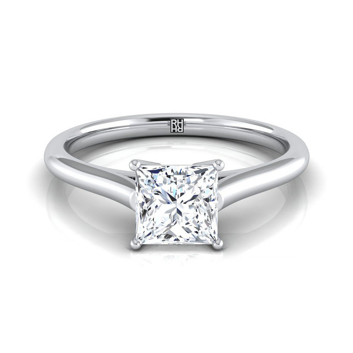 18K White Gold Princess Cut Cathedral Style Comfort Fit Solitaire Engagement Ring
