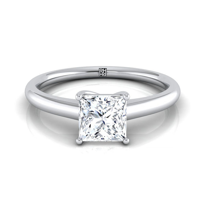 14K White Gold Princess Cut Contemporary Comfort Fit Solitaire Engagement Ring